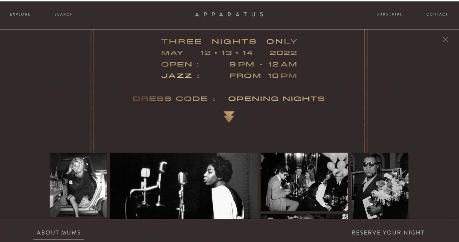 To celebrate the launch of ACT FOUR — a sweeping and cinematic collection of lighting, furniture, and rugs — an ephemeral jazz club called MUMS was created at the APPARATUS Gallery in New York that existed for three nights only. Brought to life by The Baylor Project, the musical recording of their performances was eventually made into a live album called The Evening: Live at APPARATUS — which was nominated for Best Jazz Vocal Album and Best Improvised Jazz Solo at the 65th Grammy Awards.